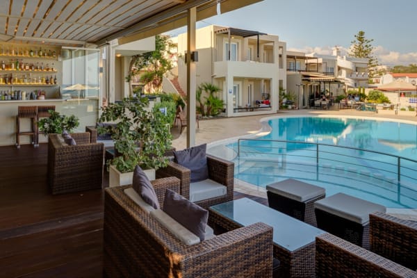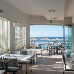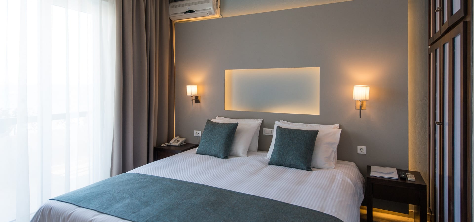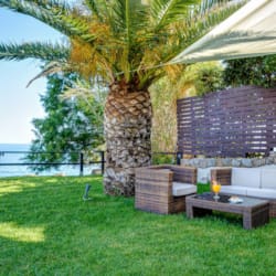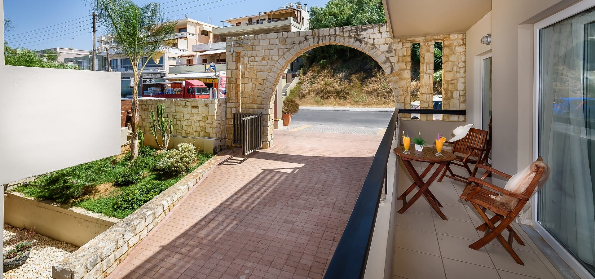 The spacious private balcony is located at the entrance of the hotel-close to the road, overlooking the garden entrance and the parking area.